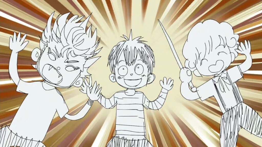 カンシは、何も知らないケイゴにビー玉を売り込む際に、ビリー・メイズのエネルギーを少しだけ発揮した。まさかビー玉が爆発的に人気になり、ビーニーベイビーやファンコみたいになるなんて、誰が想像しただろうか。モリヒトが巨大な「ビー玉」頭だったのも面白かった。