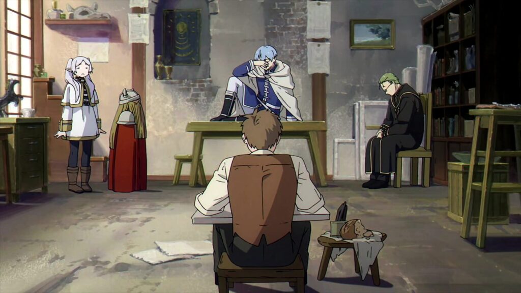 フリーレンが可愛いフェルンの師匠でいてくれて嬉しい。このシリーズのモンタージュも好き。フリーレンがまるでミミックのように本の中に閉じ込められているのも笑える。でも、ええ、タイムスリップとかいろいろあるのを見せるのにはいい使い方だと思う。