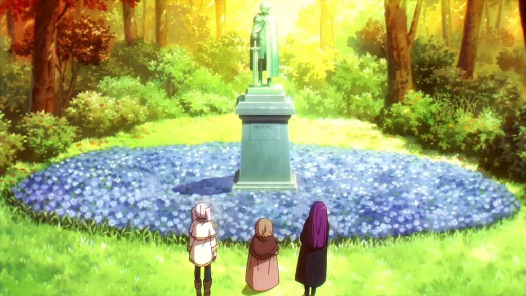 フリーレンとフェルンの魔法への愛が、ふたりの過去の繋がりに根ざしている ところが素敵ですね。わあ、あの蒼月草のおかげで、ヒンメルの記念碑が本当に綺麗に見えましたね。そして、彼が彼女のために作った花冠と同じように、 フリーレンも自分の像のために花冠を作ったんですね。