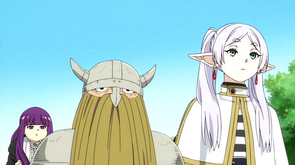 フリーレンは長寿と長きにわたる青春を併せ持つ。彼女の時間観は、1000年以上も健常者として生きてきたという事実に基づいている。ちなみに、少なくとも1000年以上は。回想シーンで主人と会った時の彼女は、今と全く同じ姿に見えた。彼女には、死なない限り、やりたいことをする無限の時間があるように思える。