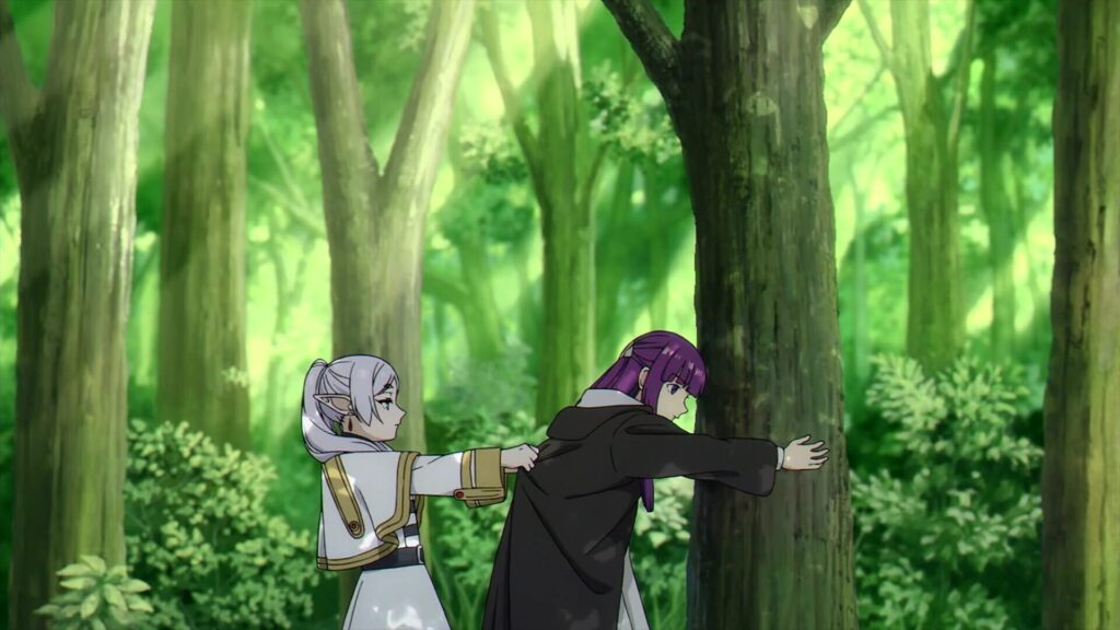 フリーレンがフェルンにまたドラゴンと鬼ごっこをしようと言うシーンから、フリーレンがフェルンを木から引きずり下ろすシーンまでのカットは、本当に面白かった。