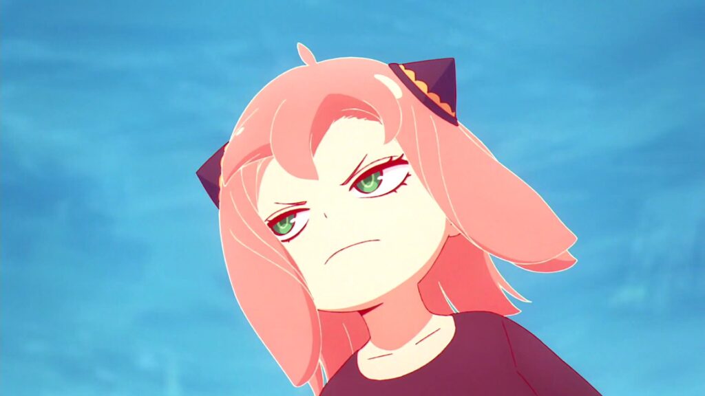 それぞれの計画が成功するかどうかでパニックになりすぎて「もういいや」と言って寝てしまうアーニャの姿は、本当に可愛くて間抜け。ベッキーはお決まりの「パンをくわえて走る」計画を手伝おうとしたけど、結局ダミアンの顔に焼きそばパンがくっついてしまった。アーニャの典型!