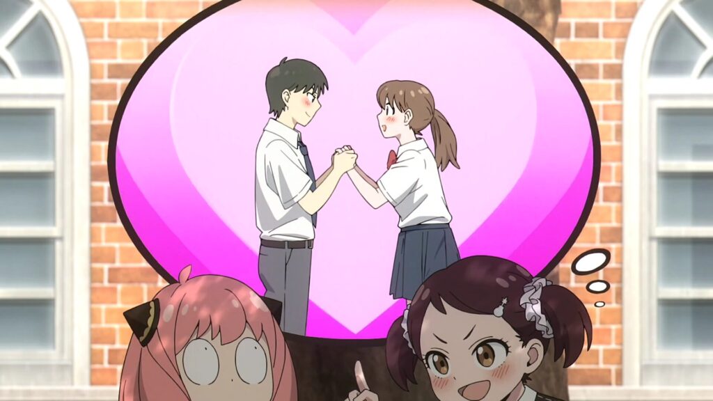 アーニャがダミアンにアピールするためのアドバイスが欲しいなら、頼れる相棒のベッキーがそばにいてくれるといいな!日本のラブコメみたいに、アーニャがダミアンに食べ物をくわえたまま友情激突!でもダミアンは回避!アーニャはダミアンの頭に食べ物を投げつけた!まあ、うまくいったみたいで、今ではふたりはまるでカップルのようにお揃いの頭飾りをしています。