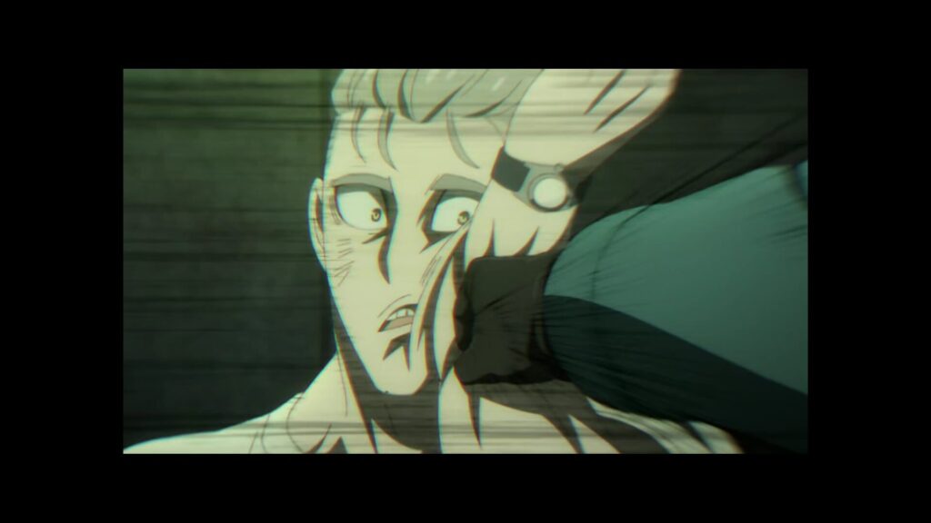 黄昏は我慢していた。ヨルのおかげでユーリがいかに頑丈なのかを悟った彼は、ついに本気を出し、パイプでユーリの頭を直撃させることに決めた。
