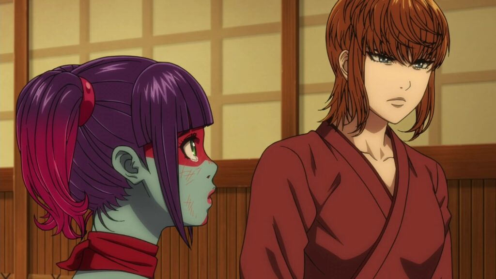 このエピソードは、これまでで最も緊迫した戦いから始まります…イチョウと現実の間で。 紫が意地悪な女の子なのも好きです。